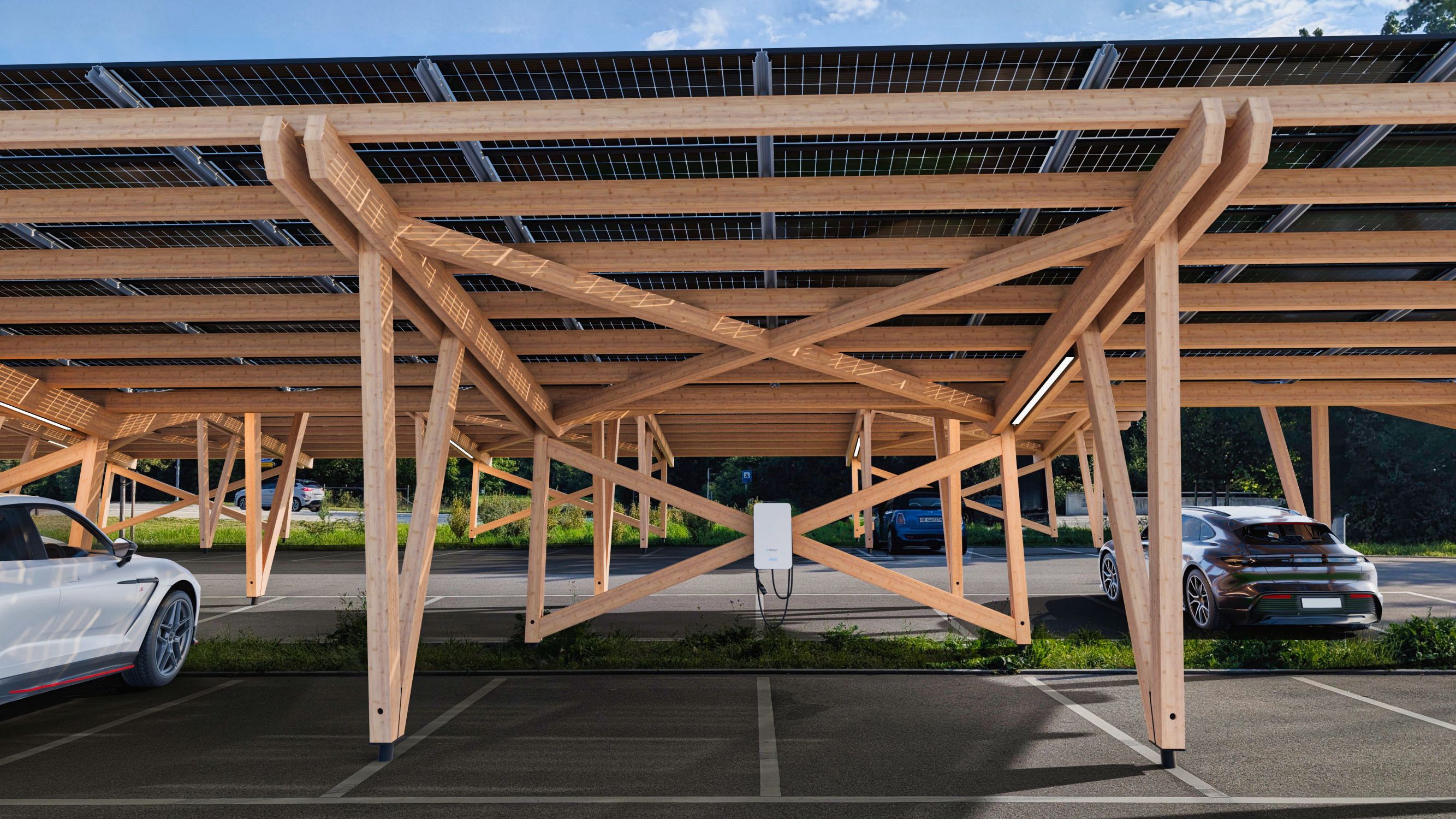 Wer unter einer sauberen Solarschicht parkt, versteht sofort: Hier handelt jemand mit Weitblick. Und wer sein Elektroauto direkt darunter lädt, zählt eins und eins sofort zusammen. Sonne oben. Strom unten. Kein Umweg.