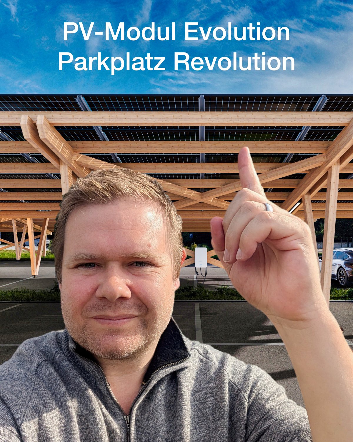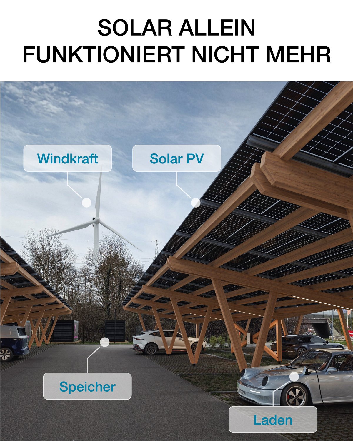 Ein elektrischer Porsche 911, ein Solar Carport aus Holz und eine Rechnung, die überrascht.