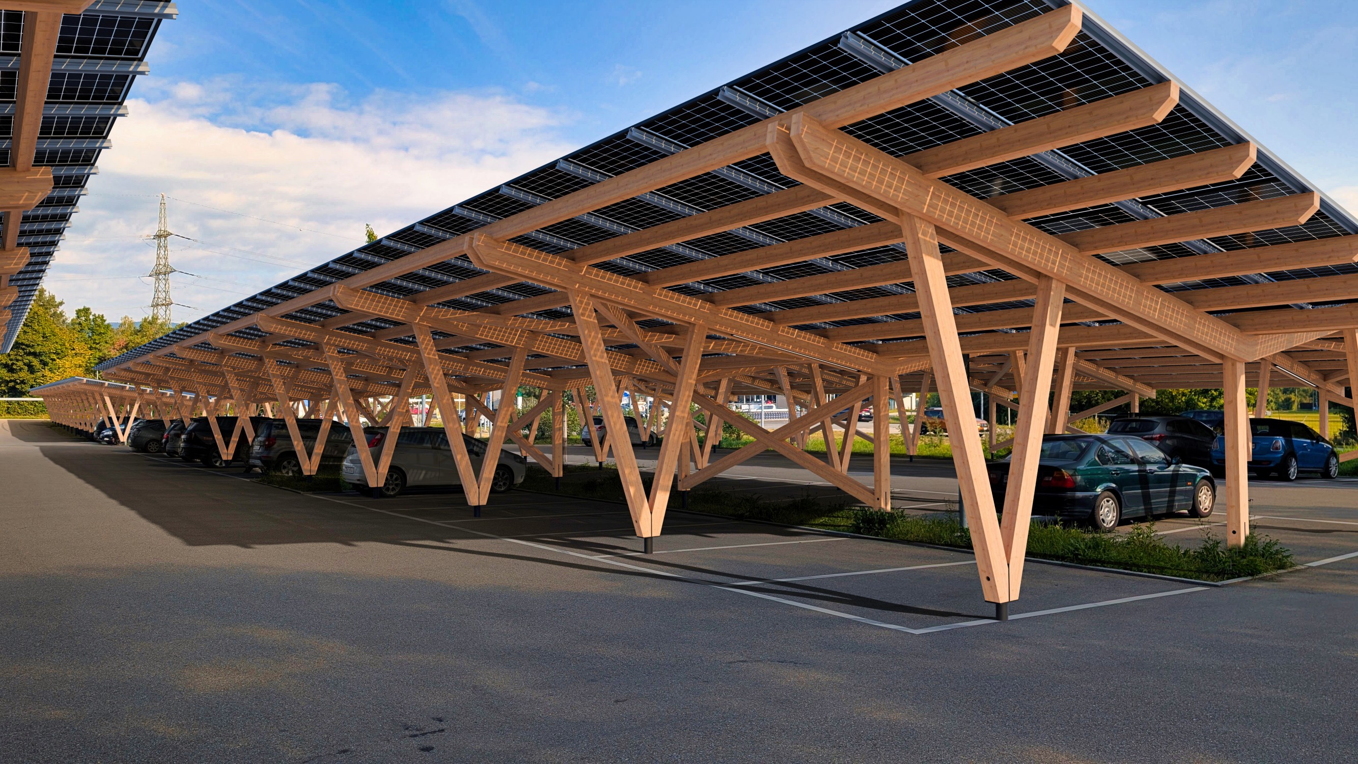 Mit integrierten Solar Carports aus Holz werden Parkplätze nicht nur aufgewertet, sondern zum wertvollen Teil einer zukunftsfähigen Energieversorgung.